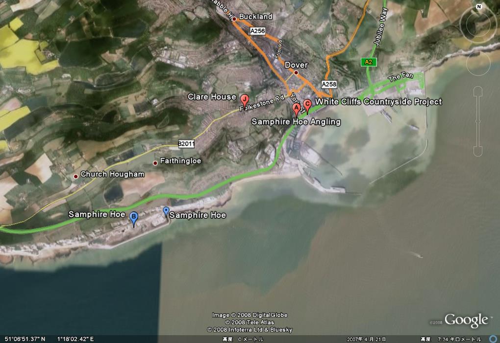 スタート地点はドーバー港から少しFolkstoneのほうへ行ったSamphire Hoeというところからになります。