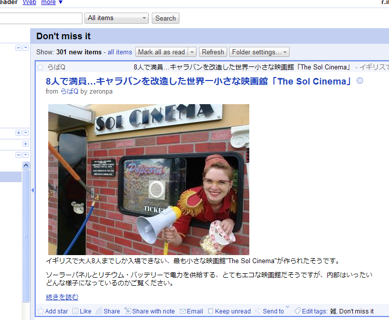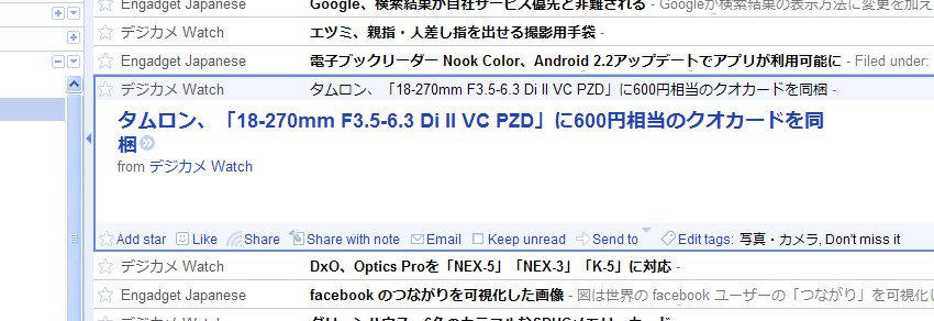 ニュースサイトやブログなどは全てgoogle readerで読んでます。100%です。