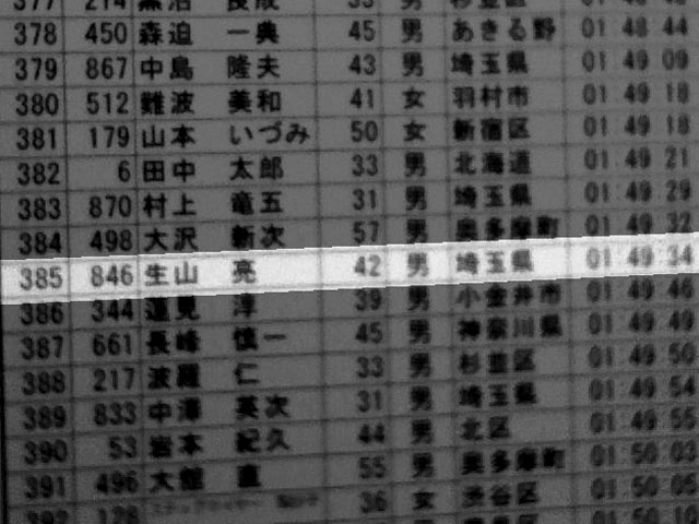 とか声援かけてたら、なんとモロちゃん登場!笑顔でゴール。おめでとうです。