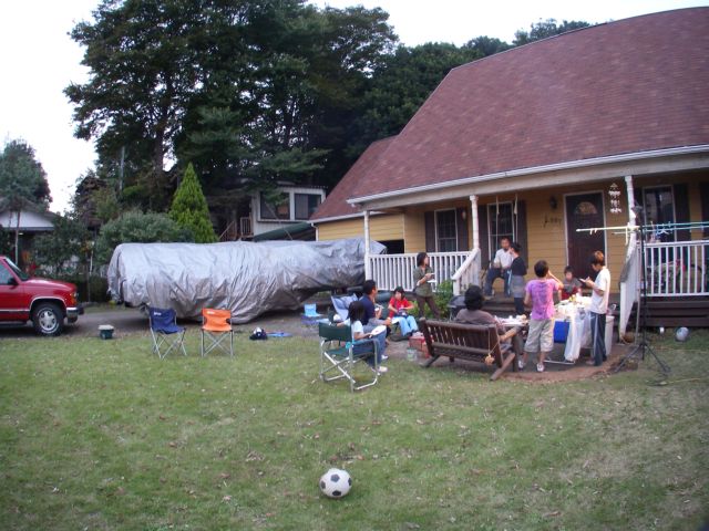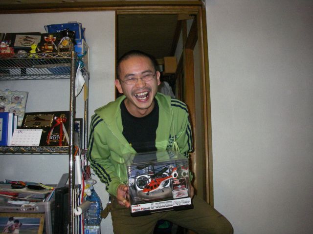 T家と生山家の忘年会。会場は我が家のウッドデッキ。暖かい昼のうちから七輪で焼肉。マルチョウうめぇ~~。プレゼント交換笑える。