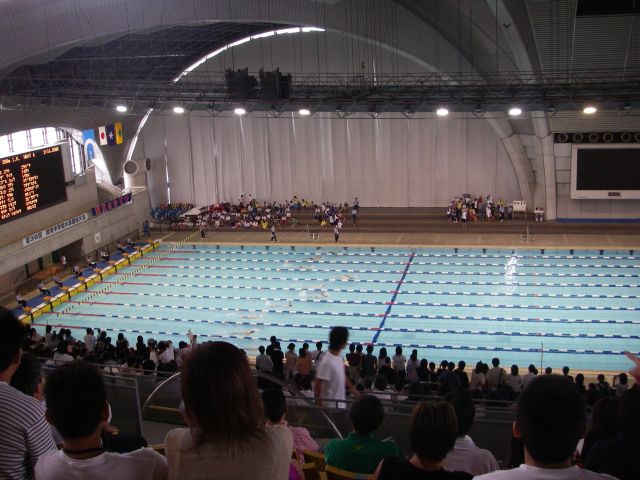 全種目がタイム決勝(予選、決勝じゃない)で参加人数も少ないから会場はそんなに混雑していませんでした。