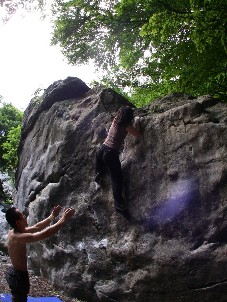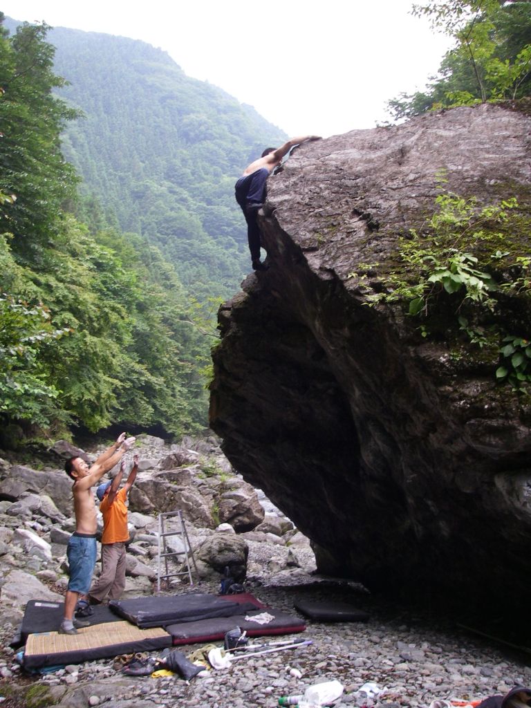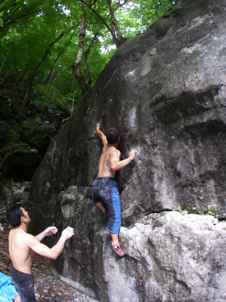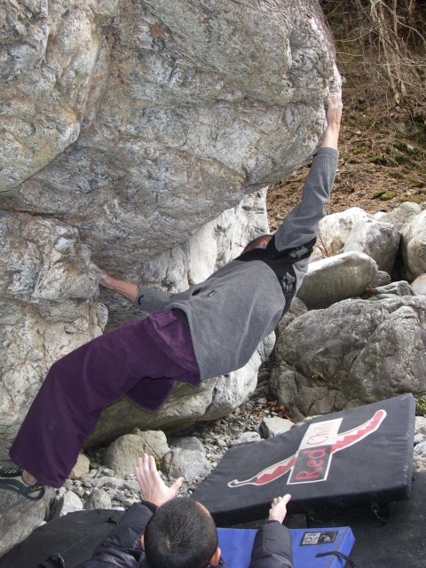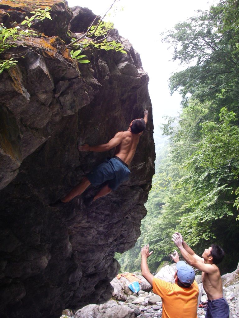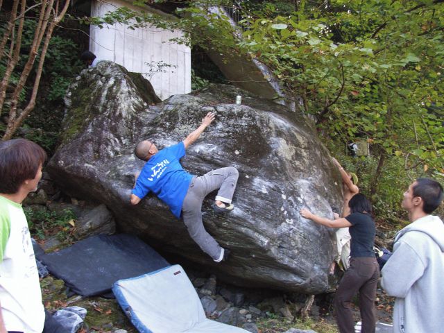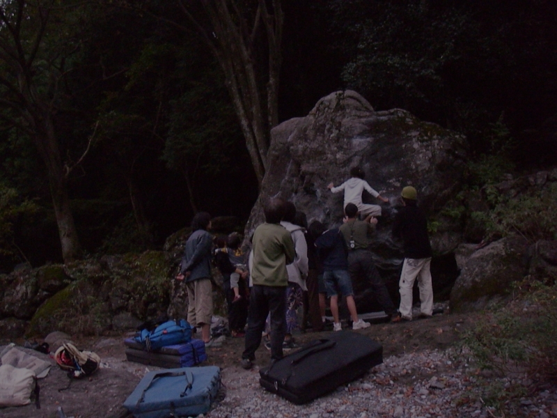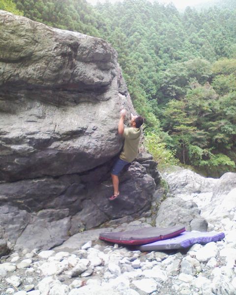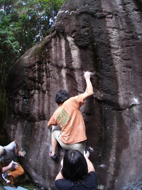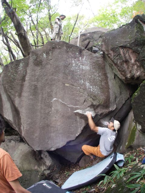 この岩には「B-CLUB」っていう初段の課題あるんだけど、だれもやんなくて、その隣のラインをやったのさ。