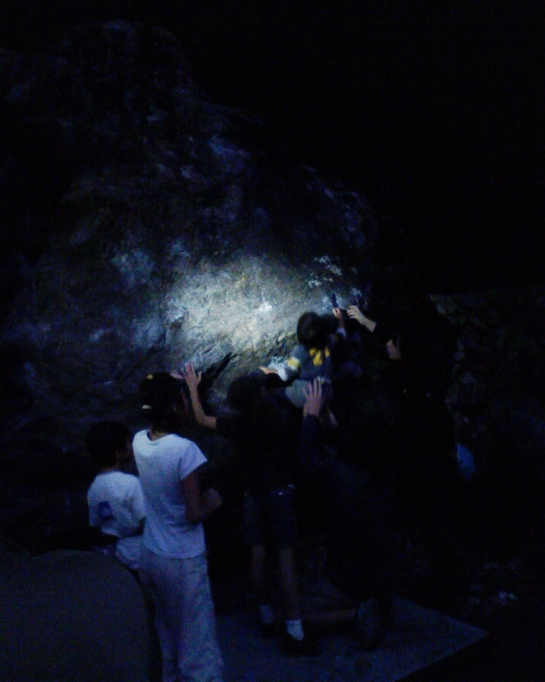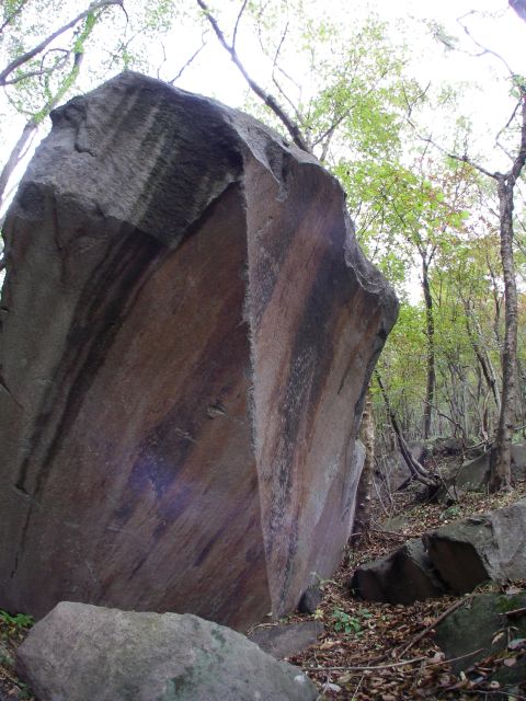 山に入って歩くこと10数分で目的の岩に到着。カンカン照りでセミも鳴いてる。真夏だな。
