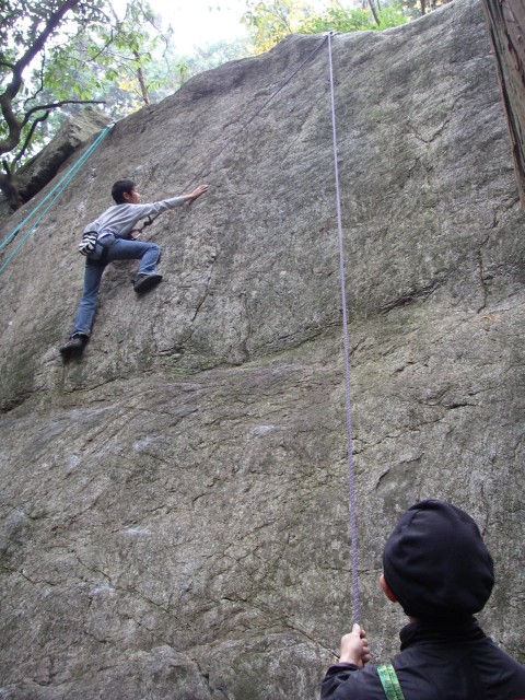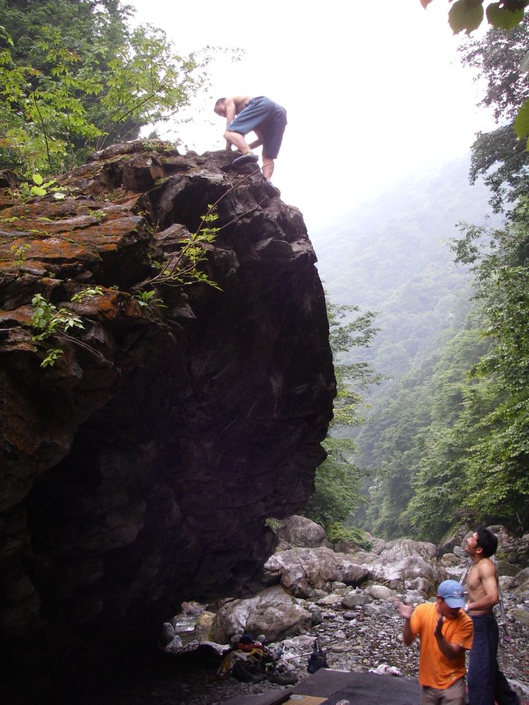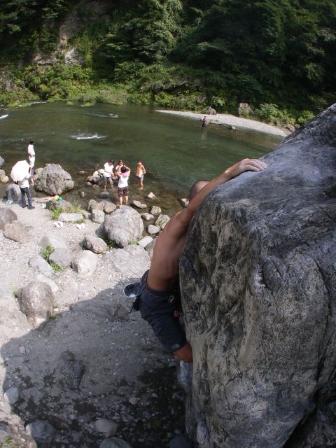 掃除した岩は全然乾かないから対岸の岩を軽く登る。